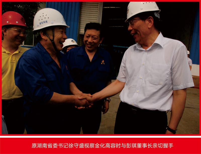 原湖南省委書記徐守盛視察金化高容時與彭琪董事長親切握手
