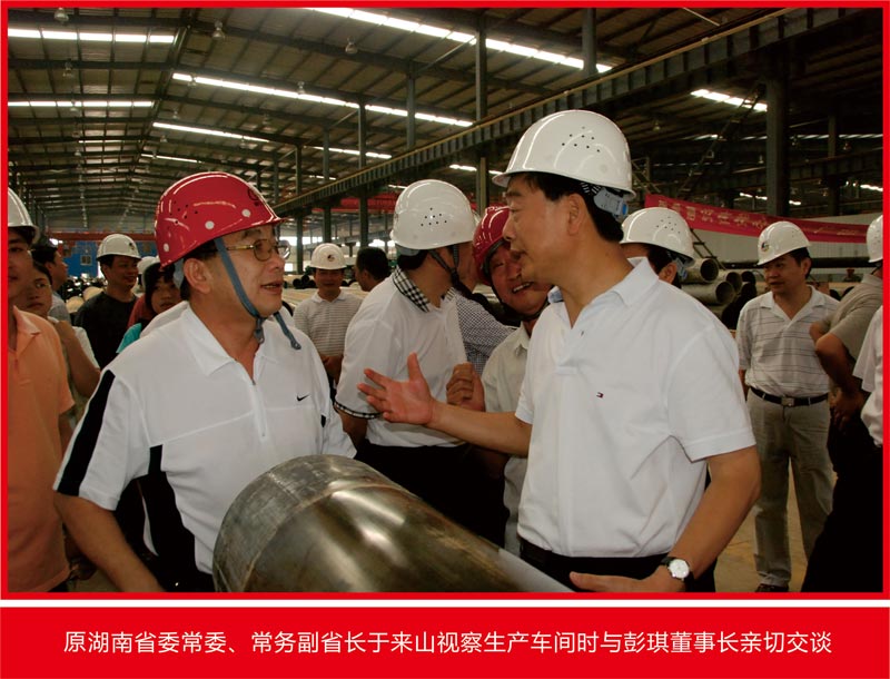 原湖南省省委常委、常務(wù)副省長于來山視察生產(chǎn)車間時(shí)與彭琪董事長親切交談